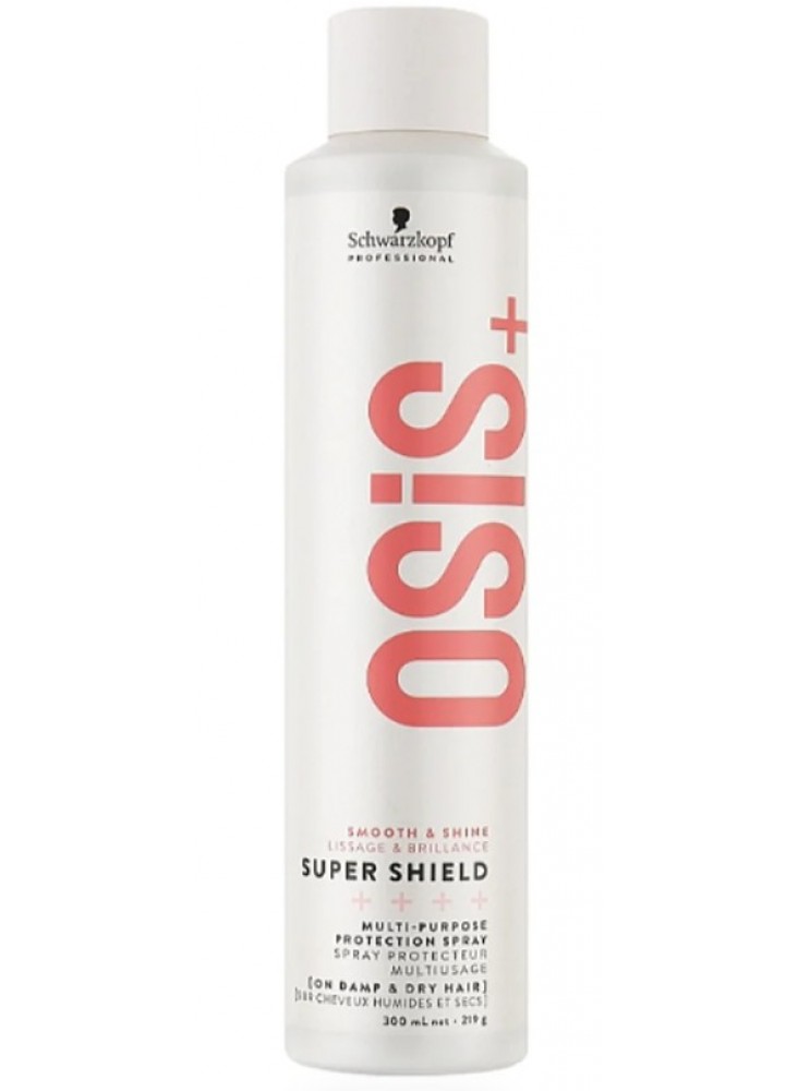 Schwarzkopf OSiS+ Smooth & Shine Super Shield — ідеальний засіб для догляду та захисту волосся під час щоденного стайлінгу. Цей багатофункціональний спрей надає волоссю шовковистість, блиск і м’якість, водночас оберігаючи його від високих температур до 230°C і шкідливого впливу зовнішнього середовища.